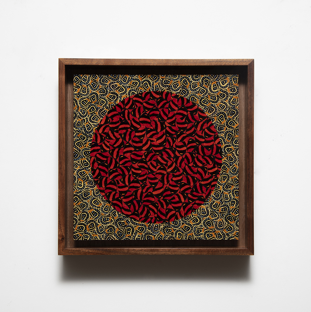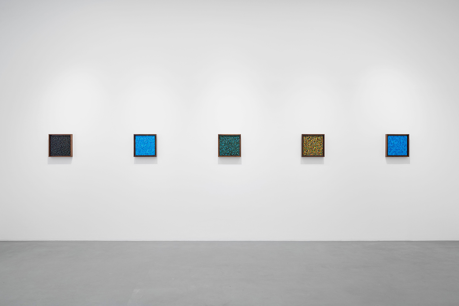Gabriel de La Mora’s practice of collecting, fragmenting and organising organic and inorganic materials is well-known. Egg shells, feathers, shoes soles and speaker covers, are just a couple of examples. If in the past the focus has been on mundane materials, the new works acquire existential notes. More precisely the show is titled “Élan Vital” which, as Eric Nava Munoz recalls in the exhibition text, is the idea of the existence of a vital force that separates living beings from ordinary matter. That energy which distinguishes living bodies, as Henri Bergson would put it. Gabriel de la Mora proposes instead an approach that builds upon the vitalist tradition and escapes such clear distinctions, rather interpreting life as undecidable. An open question yet again, as technological and scientific advancements are profoundly altering the understanding of such notion. That intrinsic repetition denoting the works could then be interpreted as an attempt to dissect entropy, while embracing the beauty of its ineffability. Despite their scientific character, in fact, Gabriel de La Mora’s paintings convey a sense of wonder. Repetition is looked at as extraordinary, almost magical – an operation acting on the mundane to generate the unforeseen, in hallucinatory compositions. One wonders what Aldous Huxley would make of this show, and a zoologist, a mathematician, a schizophrenic, a kid, a cat… Following the words of Gilles Deleuze: if repetition is possible, it is due to miracle rather than to law.