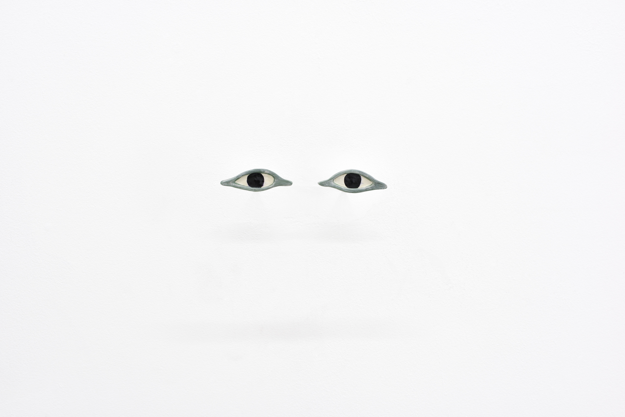 “Blood Fog” does not shy away from making use of any subterfuge, any camouflage as it charts its singular course. Scene after scene, room after room, paintings and objects carefully selected by the artist reveal the ruins of a civilization already consumed—an imaginary world blown to pieces. The story is already in motion as a pair of painted eyes—an artifact from a looted Egyptian sarcophagus, replicated by the artist – fixes you with the otherness of a (fe)male gaze… and the remoteness of an immemorial but now lost Antiquity. Alongside this gaze, the painting of a cobra hypnotizes the spectator with an irresolvable ambiguity: the threat of fatal intoxication or a promise of protection. We have no choice.