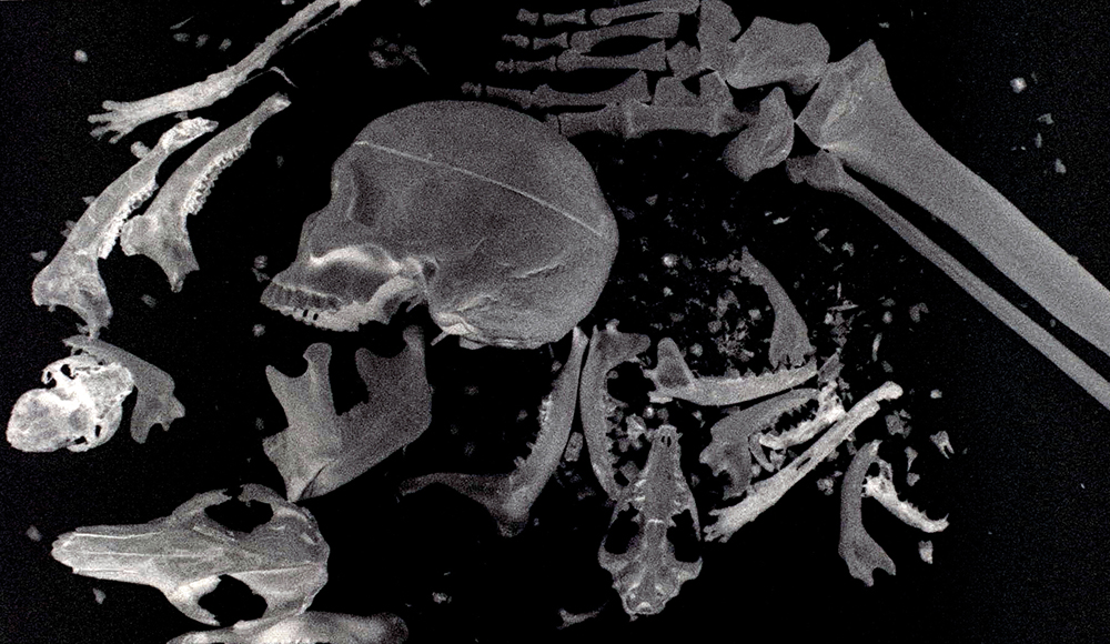 MS Babies and bones! I loved reading your story because you talk about David Lynch carcassing a cat, right? And last night I received a cat carcass! I was on an emergency bone hunt in Berlin and I found myself at a taxidermist’s house. At first, he was just gonna give me a couple of skulls but I really wanted some legs. He said I’ve got eight hundred animals in the freezer but they’re all stuck together. Wait, I might have a cat. Ten minutes later I was swinging a cat carcass in a bag.