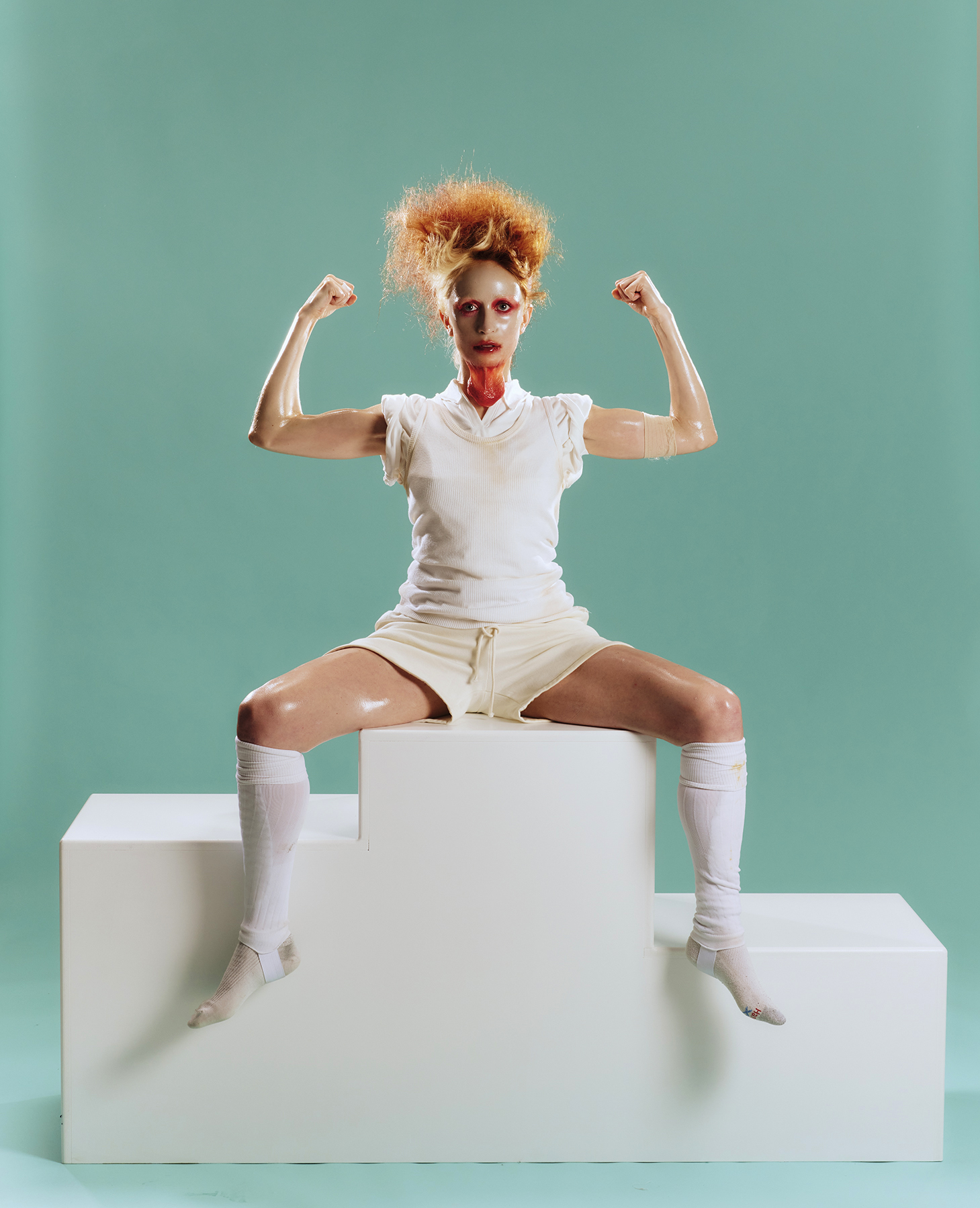 I’ve known Marianna (a.k.a. Lion) for a really long time. She made a beautiful sculpture of a swan and hyena shagging while dressed in 18th-century costume for the show I curated at Sadie Coles in 2019, My Head is a Haunted House. We’re both big monster lovers—not because they’re freakish but because they’re gorgeous—and we’ve talked about pretty much everything. Some of our favorite subjects include Terminator 2: Judgment Day (1991), blood, and dogs. We had this chat while she was in production on her latest film and installation, WINNER, a typically mesmerizing tale of a nightmare football game where infamous tackles turn into deadly dance moves and hot yet rancid minxes sing halftime songs, all watched over by a chorus of demonic babies voiced by legendary no wave siren Lydia Lunch. It’s also a wicked retelling of Graham Greene’s story, The Destructors.