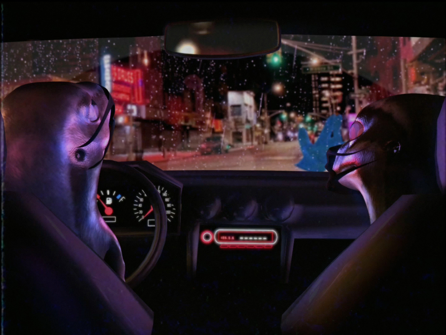 For Aicha vastly expands on the world-building of 2 Lizards—which is to say, it is even more like our world. Its long narrative format lends time for further character development and narrative agility, and Bennani and Barki’s collaboration with creative producers and animators John Michael Boling and Jason Coombs achieves an astounding level of visual detail. Now, the animals are highly individualized, with custom wardrobes and accessories to express their personalities in addition to the particulars of their fur, teeth, manicured nails and styled hair, and facial tics. They move between sets that are hybridized between live video backgrounds and 3D models, the artificial luminosity of city streets casting reflections onto the character’s shiny fur or wet eyes. The uncanny tension between live action background and animated characters promotes a cartoonish playfulness that feels like signature Bennani; for instance, a character remarks as a giant tube of toothpaste painted on the side of a truck gets “squeezed” as the accordion-style door opens. But even when completely absorbed in the visual world of For Aicha, voice plays a primary role. It is a given that in animation the voice is key to anthropomorphization and its plausibility; the human voice allows us to believe that animals can talk, walk upright, wear clothes, have fingers and ultimately exist as we do. If mainstream cartoons match their outsized voices to their fantastical forms, Bennani and Barki have done the opposite, treating the recorded audio like documentary footage. It is fitting then that the emotional core of For Aicha is a phone call between Bennani and her mother, and the catalyst for the fictional film within a film—the opportunity to envision what can’t be seen on the other end of the line and manifest it into reality.