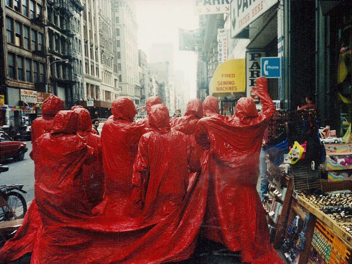 Red Coat, 1969, performance in New York’s Chinatown for Fernando Arrabal’s film Adieu Babylone!, 1992. © Nicola L. Collection and Archive.